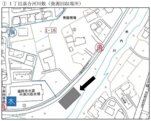 ① 1丁目落合河川敷 水道取水場上流側 杉村様宅道路斜め向かい(資源回収場所)