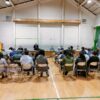 ・総会終了後、班長に班毎の議案書(人数分)の束の引き渡し